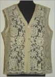 in der Farbe beigepflegeleichtdas Rückenteil aus leinenartigem StoffVorderteil mit hochwertigem Spitzeneinsatzzwei Muster mit Goldfaden und Pailletten bestickt4 Knöpfe mit KnopfschlaufenNeu