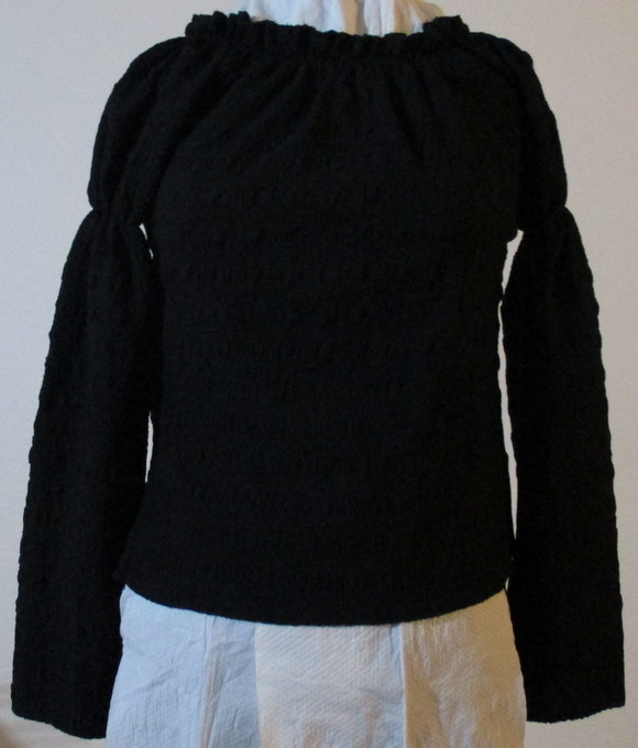 schwarze Bluse in sich strukturierter Stoff seersucker ähnlich