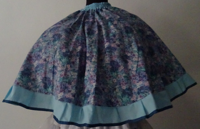 unten mit 5,5 cm hellblauer Rüsche verziert mit dunkelblauem Satinband