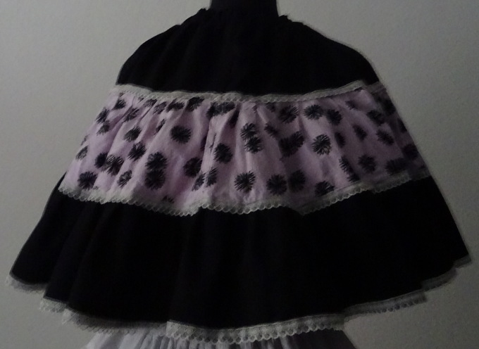 die mittlere Stufe in altrosa mit schwarzen Blüten