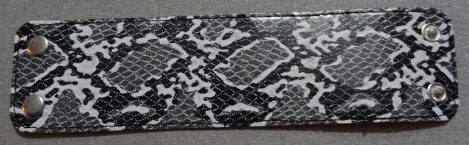 Kunstleder-Armband in schwarz-grau-weissem Schlangenmusterwird geschlossen mit 2 Druckknöpfen Breite: 5 cmmax. Länge: 18 cmNeu