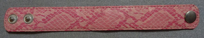 Kunstleder-Armband in hell- und dunkelrosafarbenem Schlangenmusterwird geschlossen mit 2 DruckknöpfenBreite: 2,5 cmmax. Länge: 18 cmNeu