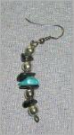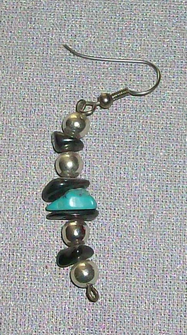 einzelner Ohrhänger mit 4 dunkelgrauen + 1 türkisfarbenen Schmucksteinen und 4 silberfarbenen PerlenLänge 5 cmNeu