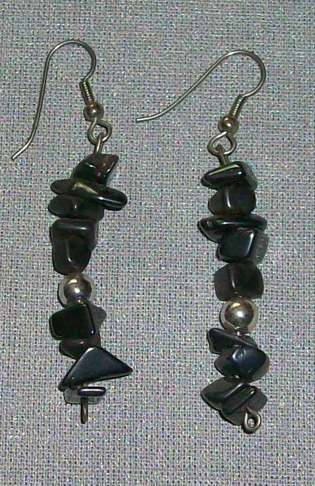 Ohrhänger mit dunkelgrauen Schmucksteinen und silberfarbener PerleLänge 5,5 cmNeu
