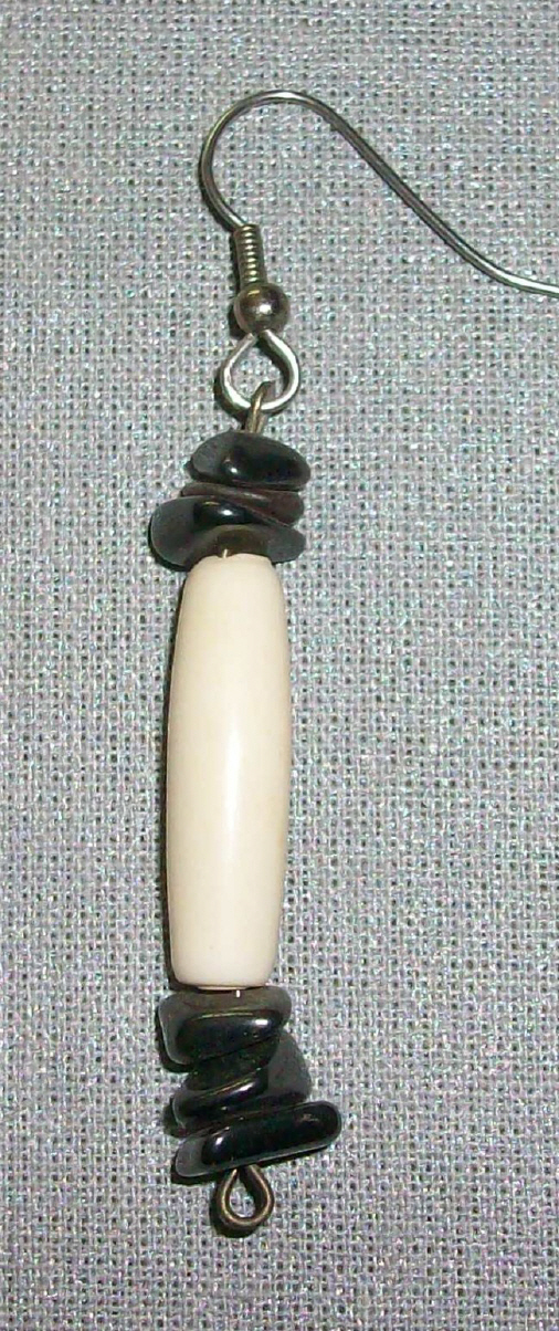 einzelner Ohrhänger mit dunkelgrauen Schmucksteinen und länglicher, weisser PerleLänge 5,5 cmNeu