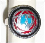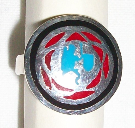 Silberring mit Indianermotiv in den Farben schwarz-rot hellblauPlatte 1,8 cm DurchmesserGrösse 16 mm