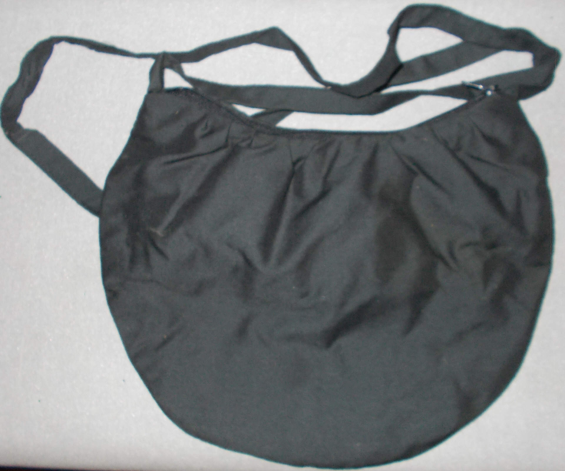 schwarzes Stofftäschchen mit schwarzem Stoffbandmit 18 cm Reissverschlusslässt sich in den Gürtel einknüpfen18 cm hoch - 24 cm breit