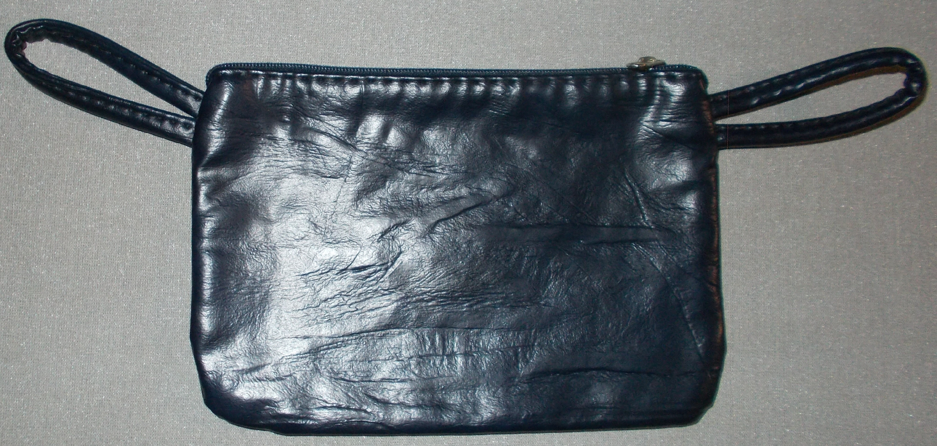 sehr dunkelblaues Kunstledertäschchen mit Reissverschlusslinks und rechts zwei Schlaufen mit denen das Täschchen in den Gürtel eingebracht wird13 cm hoch - 19 cm breit TOP Zustand!