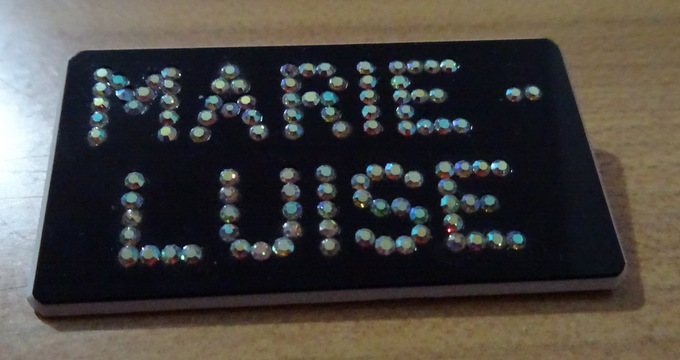 Badgeschwarz mit Aufschrift "Marie-Luise" aus StrasssteinenMaße: 5,5 x 3 cmTOP Zustand, wie neu