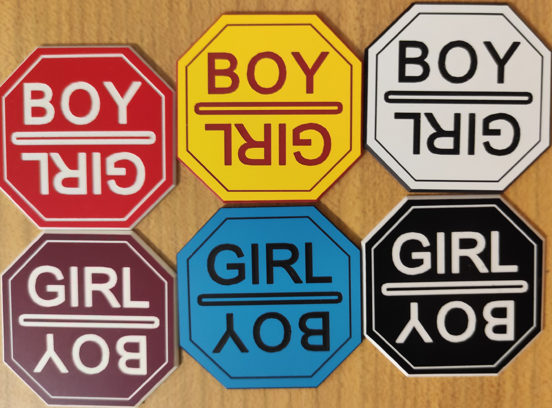 gelb mit roter Schrift 1x hellblau mit schwarzer Schrift 1x rot mit weißer Schrift 1x schwarz mit weißer Schrift 1x weinrot mit weißer Schrift 1x weiß mit schwarzer Schrift 1x