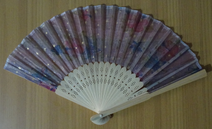 wunderschöner zierlicher Fächer aus filigranen Holzstäbchenbespannt mit rosafarbenem Stoff, Blütchen und goldenem Sternchenmusterder Fächer eignet sich aufgrund seiner Grösse perfekt für KinderGröße aufgespannt: H. 22 cm, B. 36 cmNeu