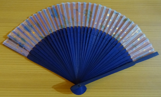 wunderschöner zierlicher Fächer aus filigranen dunkelblauen Holzstäbchen