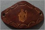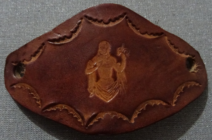 mit eingestanztem weiblichen Wesen und gestanzten, gewellten Ornamenten