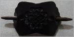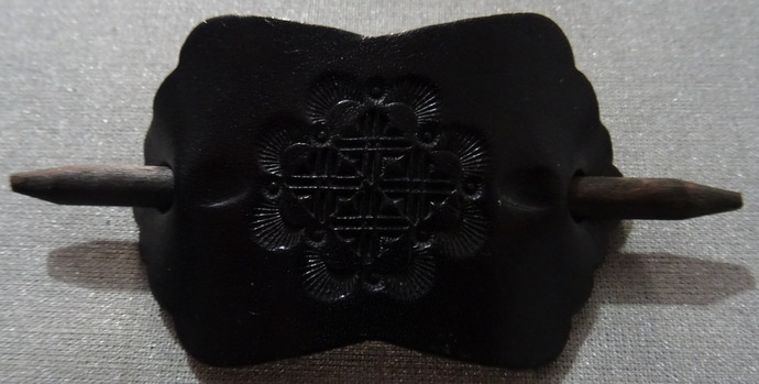 Haarspange aus schwarzem Echt-Leder mit eingestanzter Blüte und gewelltem RandMaße: 9,2 cm x 5 cmwie NEU