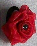 DamenschmuckRing mit Organdy-Roseder Ring ist aus Gummibanddie Rose aus weinrotem Organdy mit schwarzer Perle und 4 Straßsteinen